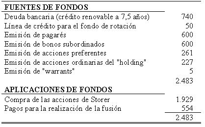 se financió la operación a través de siete tipos de